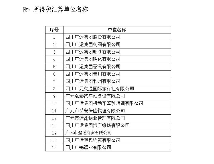 按照稅收法律、法規(guī)及行業(yè)規(guī)定,對公司2015年的企業(yè)所得稅進行匯算,并出具匯算清繳報告。匯算范圍為廣運集團股份有限公司及其廣元市行政區(qū)劃內(nèi)的15家子公司。